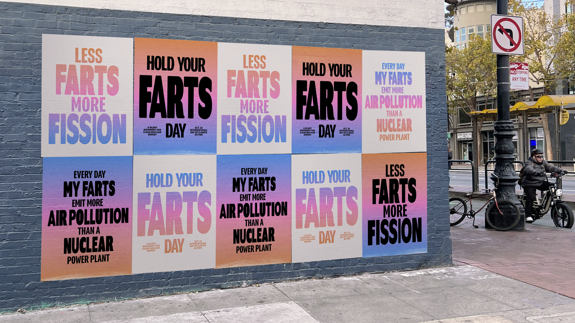 “Humorously contrasting human flatulence’s methane output with nuclear’s clean, reliable power.”